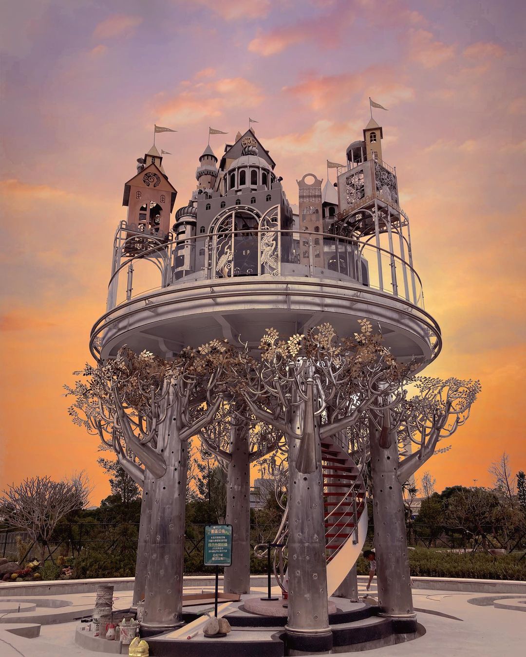 ▼雖然目前尚在試營運期間,但園區的「空中城堡」已掀起了熱潮,凡是預約入園的遊客們一定必拍!「空中城堡」的設計是以生命之樹造型上的鏡池為底座,上方撐起整座城堡,夜晚點燈後視覺效果更佳魔幻,令人目眩神迷。
