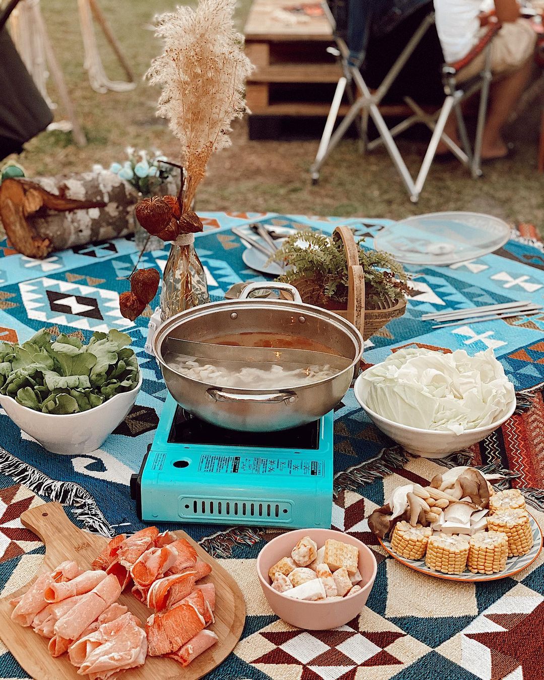 ▼冬天晚上準備的餐點竟然是鴛鴦鍋會不會太浮誇(夏天是烤肉)!NO~NO~NO~當你覺得露營晚餐吃鴛鴦火鍋已經很扯的時候,怎麼想也想不到吃鴛鴦火鍋的同時竟然還能配電影啊!這真的是在露營嗎XD?